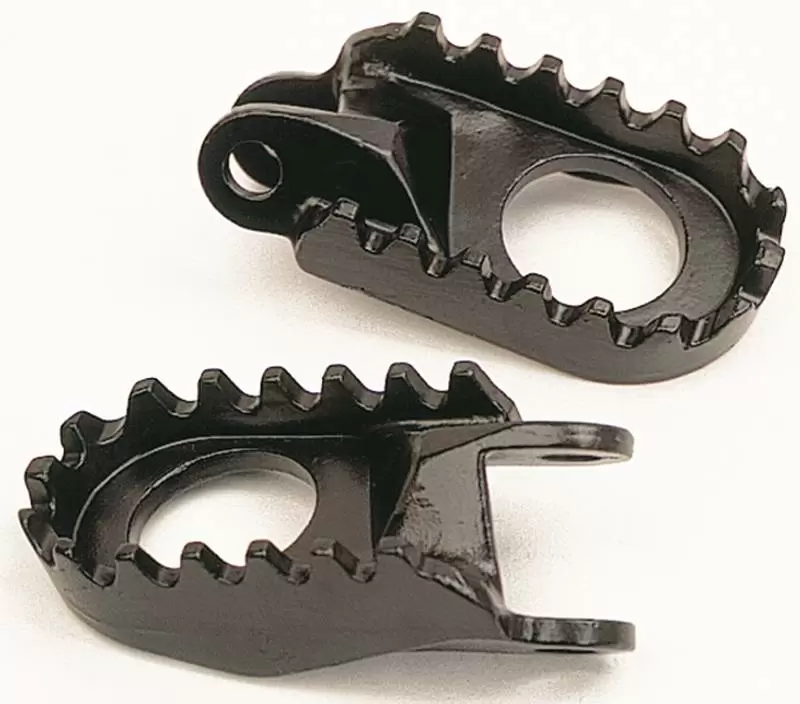 MD Foot Pegs Feature wide foot area with deep cleets to keep you on control while putting less stress on a small portion of your foot, large hole in the centre of the foot rest to eliminate mud/dirt build up, the design gives maximum strength for the lightest weight, 44mm Wide.