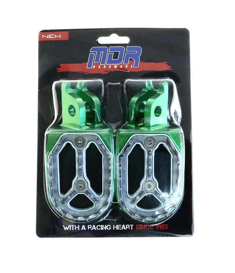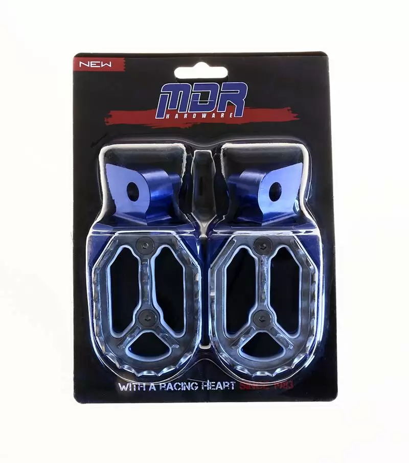MDR Pro Bite foot-pegs come with an extra wide replaceable stainless Steel footplate providing the rider with the ultimate grip and anti slip control in any race condition.