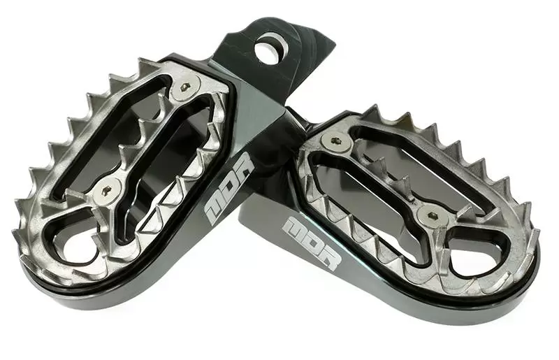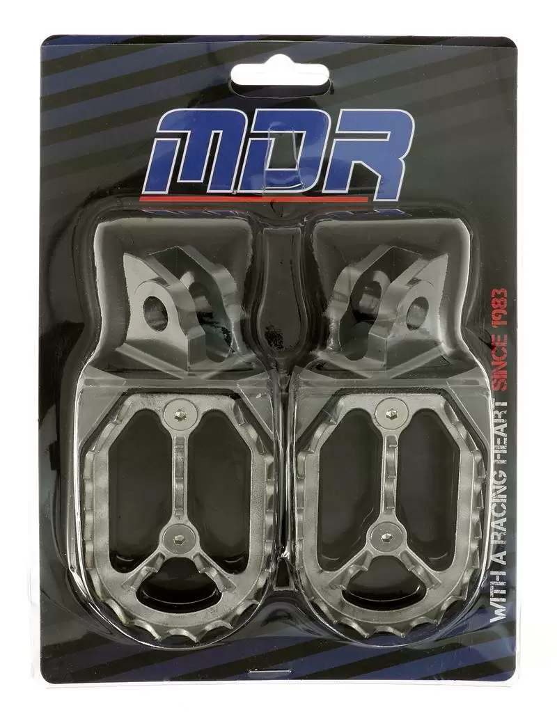 MDR Pro Bite footpegs come with an extra wide replaceable stainless Steel footplate providing the rider with the ultimate grip and anti slip control in any race condition.