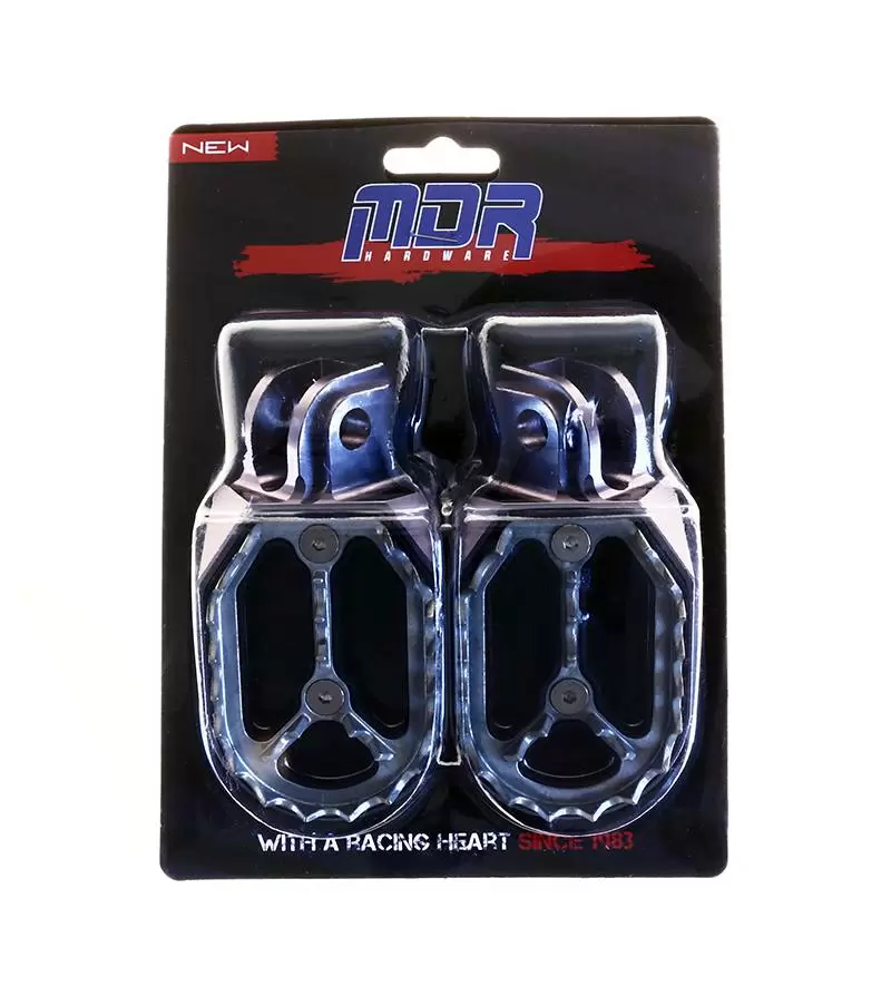 MDR pro bite wide foot-pegs are manufactured from a Rigid CNC machined light weight aerospace aluminium alloy construction.