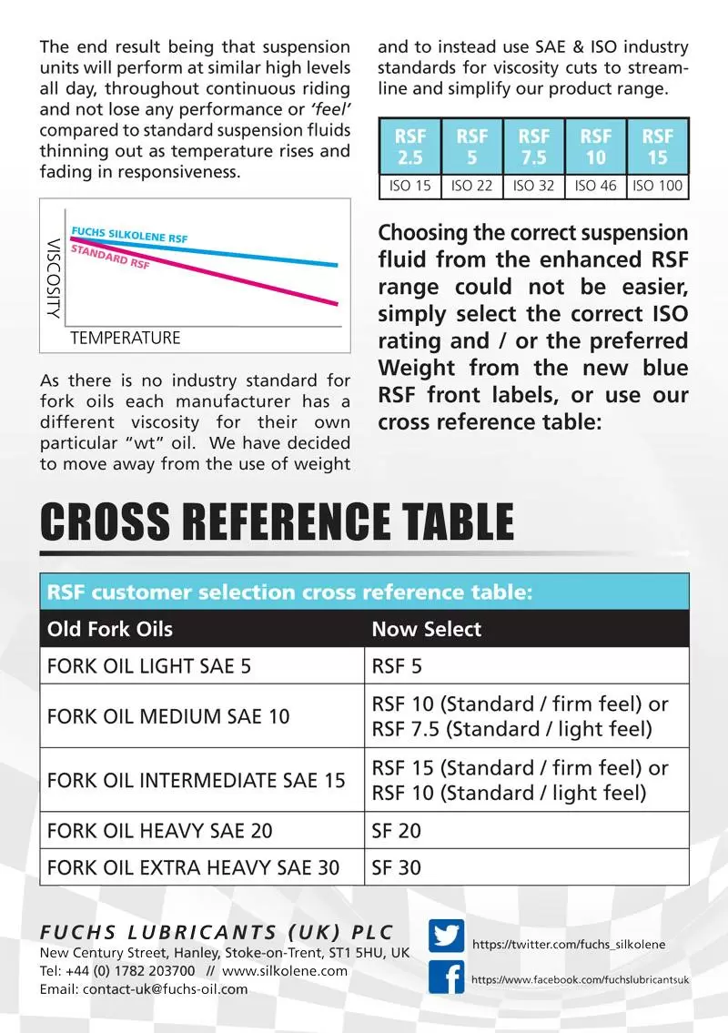 Silkolene RSF Racing Suspension Fluid Advantages / Benefits: