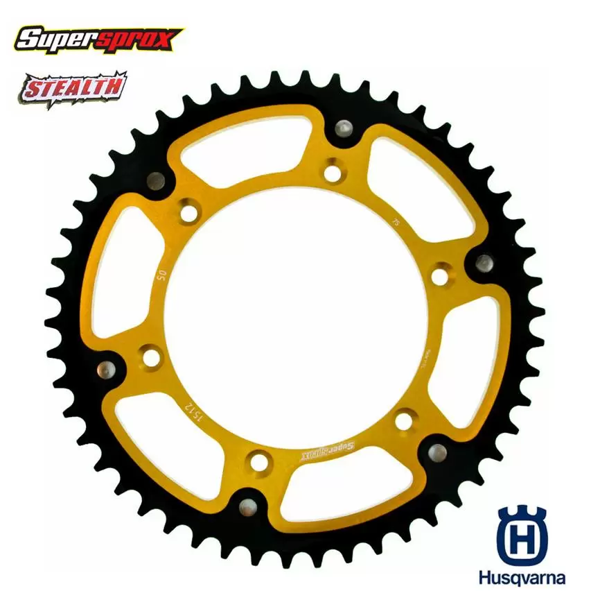 Buy Supersprox Stealth Sprockets for Husqvarna Bikes in Gold from MD Racing Products, A leading distributor for Motocross gear, parts and accessories offering some of the most competitive prices in the industry since 1983. We are a family business that’s dedicated to the motocross industry, You Ride it? We can supply it!